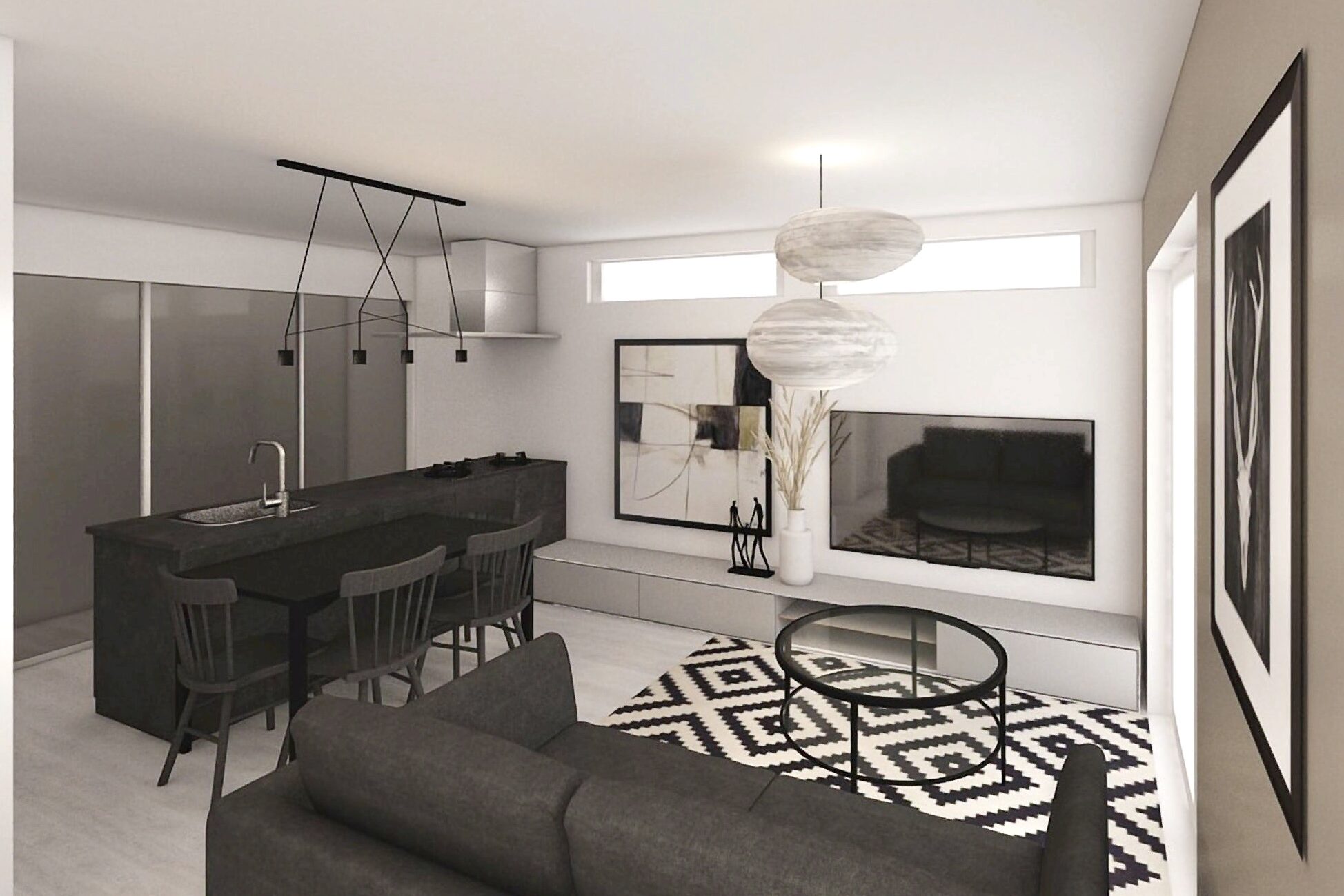 アート好きなご夫婦のためのモダンなリビング