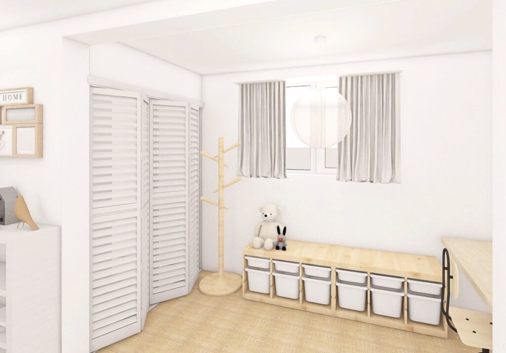 隣接する和室は、お子さまが遊んだり、将来的には宿題をするスペースとして計画。和室感を強調せず、LDKと調和する家具をセレクトし、球形の照明を取り入れることで、洋室のようにも和室のようにも馴染む柔軟な空間に。落ち着きと遊び心を兼ね備えた、暮らしやすい子どもスペースとなっています。