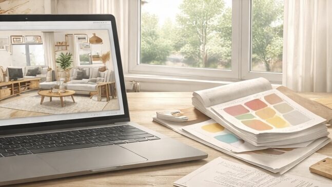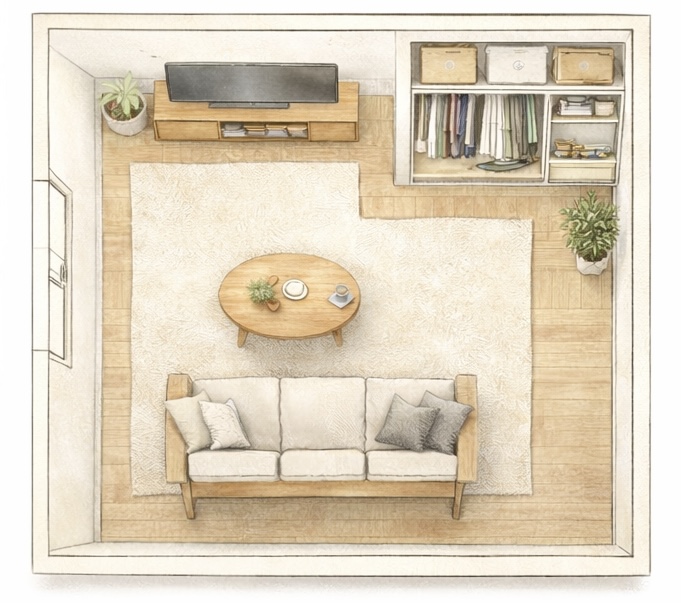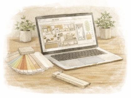 お部屋の図面やお写真を元に家具の配置やサイズ感、色のバランスがイメージしやすい形でご提案いたします。初めての方でも迷わず進められるよう丁寧でわかりやすい資料づくりを心がけています。